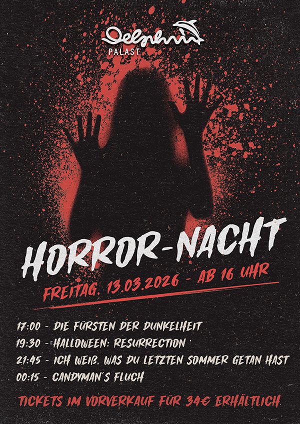 Neben dem aktuellen Kinoprogramm, erfreut sich der Delphin-Palast durch seine Events und Genre-Nächte über die Grenzen Wolfsburgs hinaus großer Beliebtheit. Egal, ob bei der „Horror-Nacht“ an jedem Freitag den 13., der „Kultfilm-Nacht“ oder „Action-Nacht“, sowie der „Trash-Nacht“, für jeden Filmgeschmack ist etwas dabei!